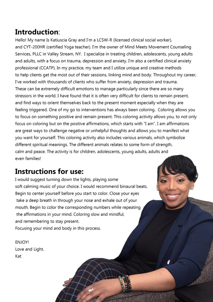 As a psychotherapist and a yoga teacher I often find it difficult for people to stay present in their lives. Most people are always focused on the future and/or the past. Part of coloring, specifically coloring with positive affirmations, brings you closer to your goals in life and allows you to challenge negative or unhelpful thoughts.